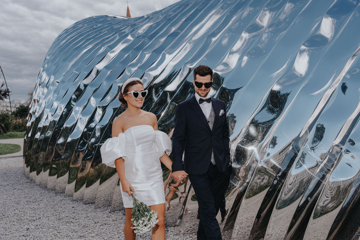 Oglądaj dalejElegancki ślub w kościele na Skałce i wesele na Kopcu Kościuszki w Krakowie