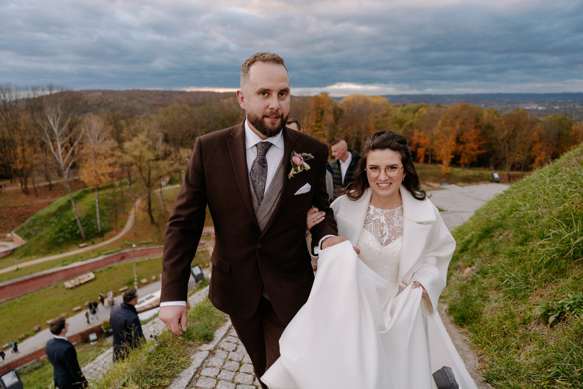 Elegancki ślub w kościele na Skałce i wesele na Kopcu Kościuszki w Krakowie