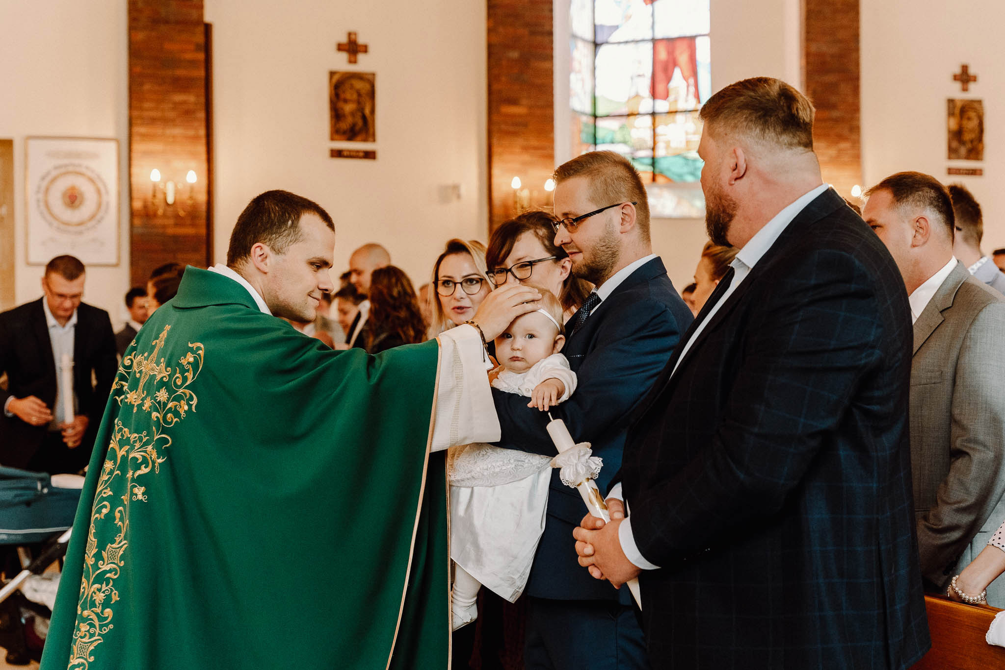Chrzty święte − uroczystość w kościele + rodzinny obiad lub przyjęcie. Łapię emocje rodziców, chrzestnych i rodziny, detale i dekoracje, a także spontaniczne momenty.