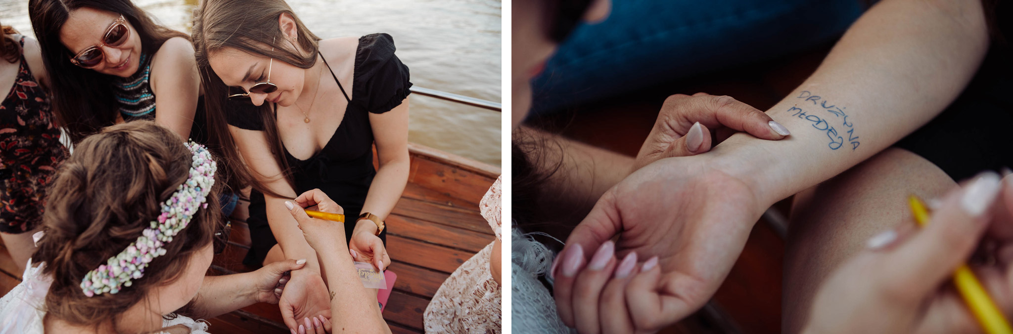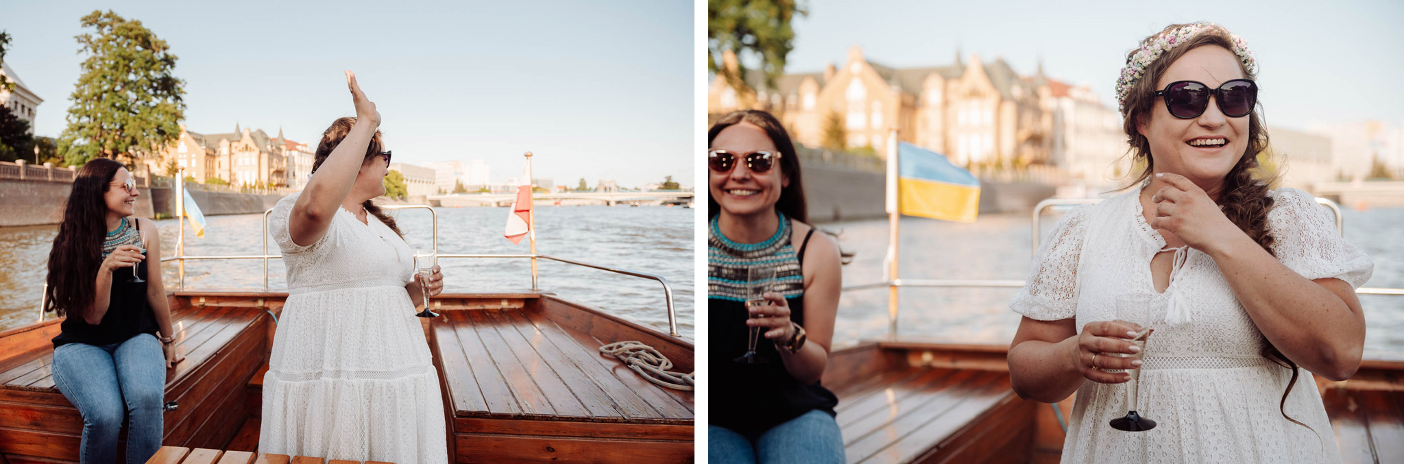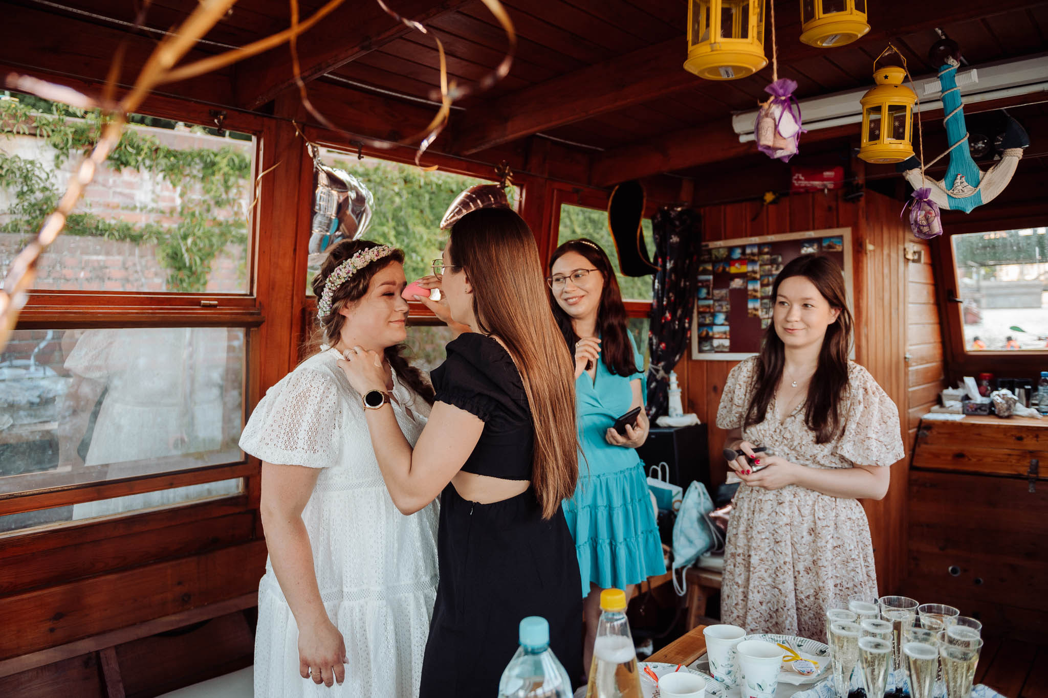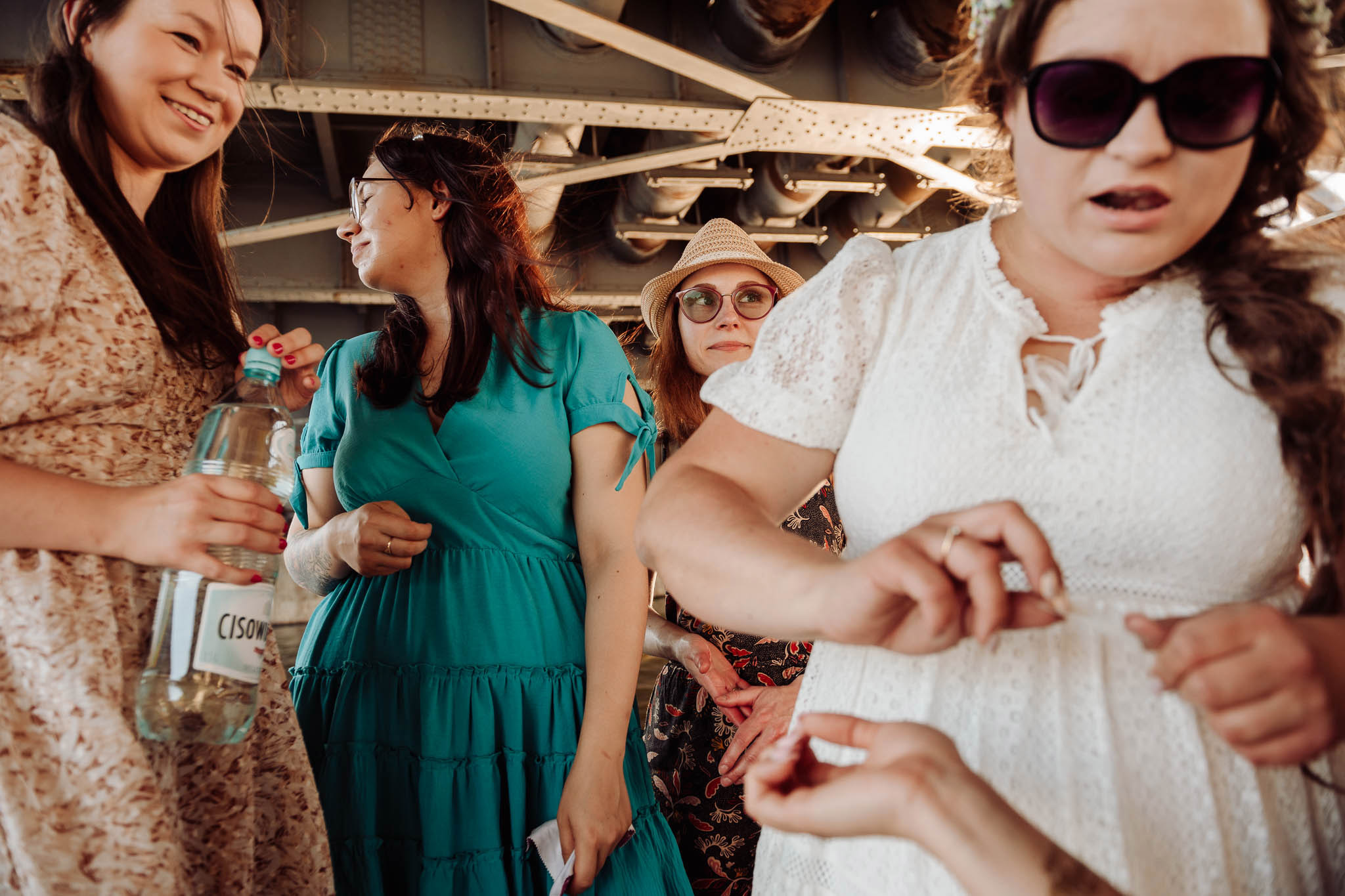 W oczekiwaniu na Karolcię, zwaną Przyszłą Panną Młodą, obczajałyśmy potencjalne łajby, które nie napawały nas optymizmem. Na szczęście gdy w umówionym miejscu zacumowała niebrzydka łódź, z której wysypała się grupa pijanych lasek, odetchnęłyśmy. Nasze dziewczyny przystąpiły do dekorowania, a ja pomiędzy nadmuchiwaniem balonów wyjęłam aparat.
