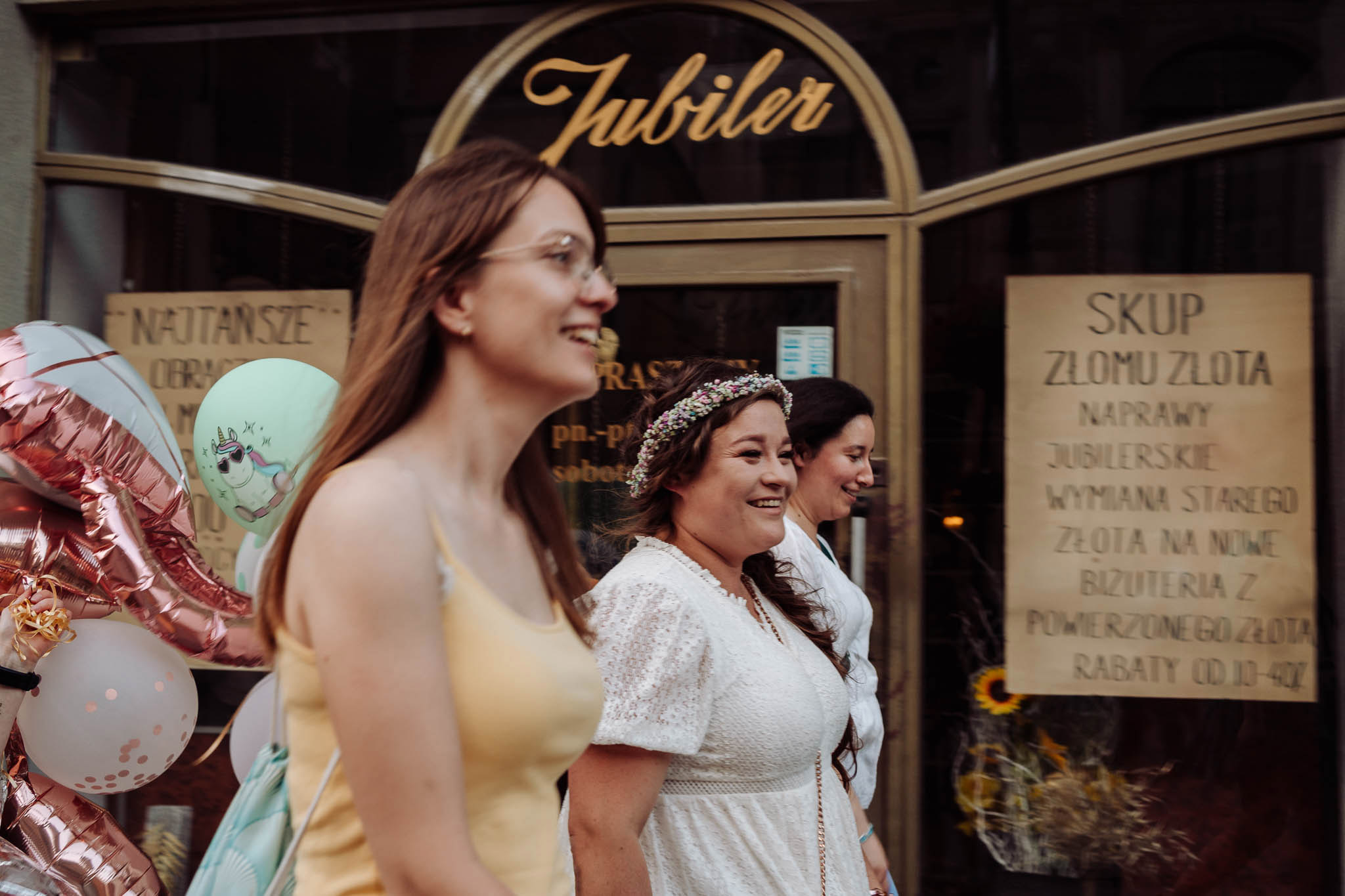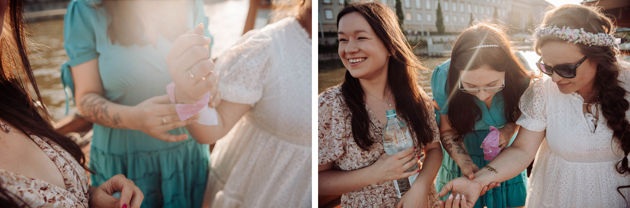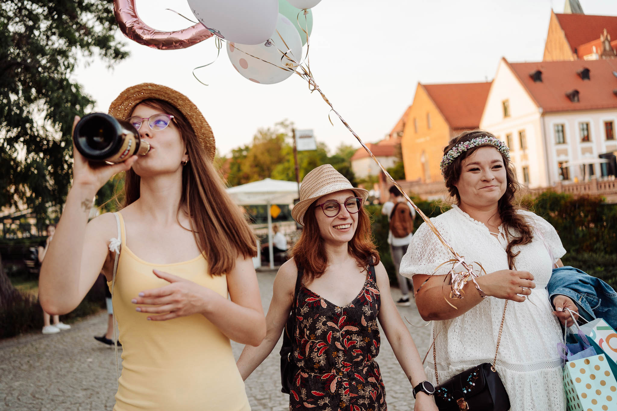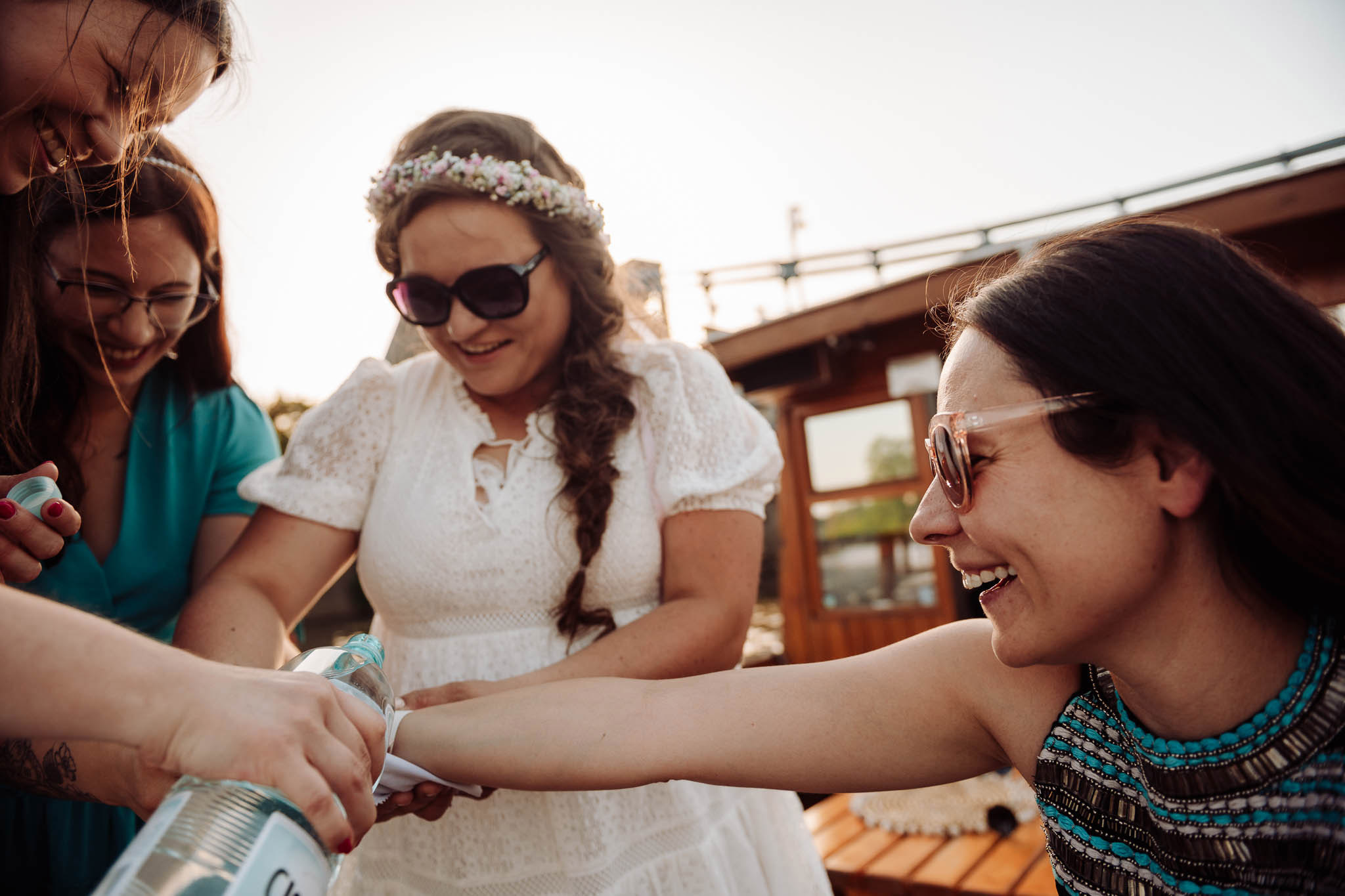 W oczekiwaniu na Karolcię, zwaną Przyszłą Panną Młodą, obczajałyśmy potencjalne łajby, które nie napawały nas optymizmem. Na szczęście gdy w umówionym miejscu zacumowała niebrzydka łódź, z której wysypała się grupa pijanych lasek, odetchnęłyśmy. Nasze dziewczyny przystąpiły do dekorowania, a ja pomiędzy nadmuchiwaniem balonów wyjęłam aparat.