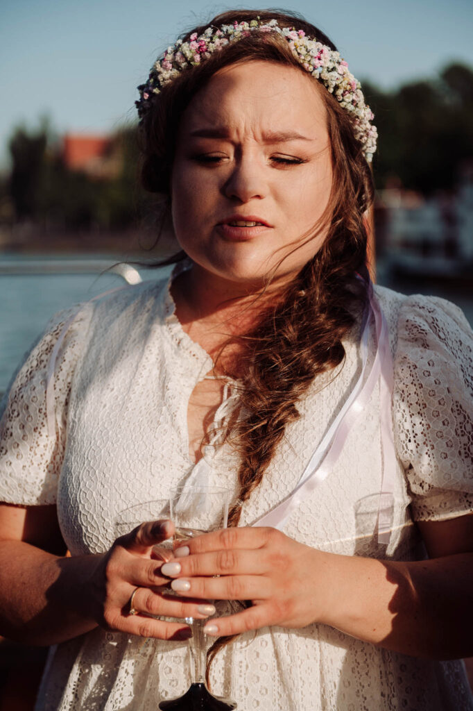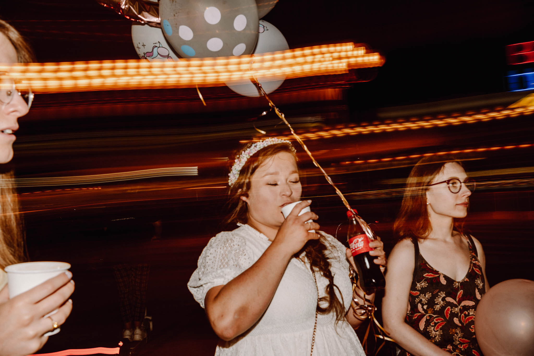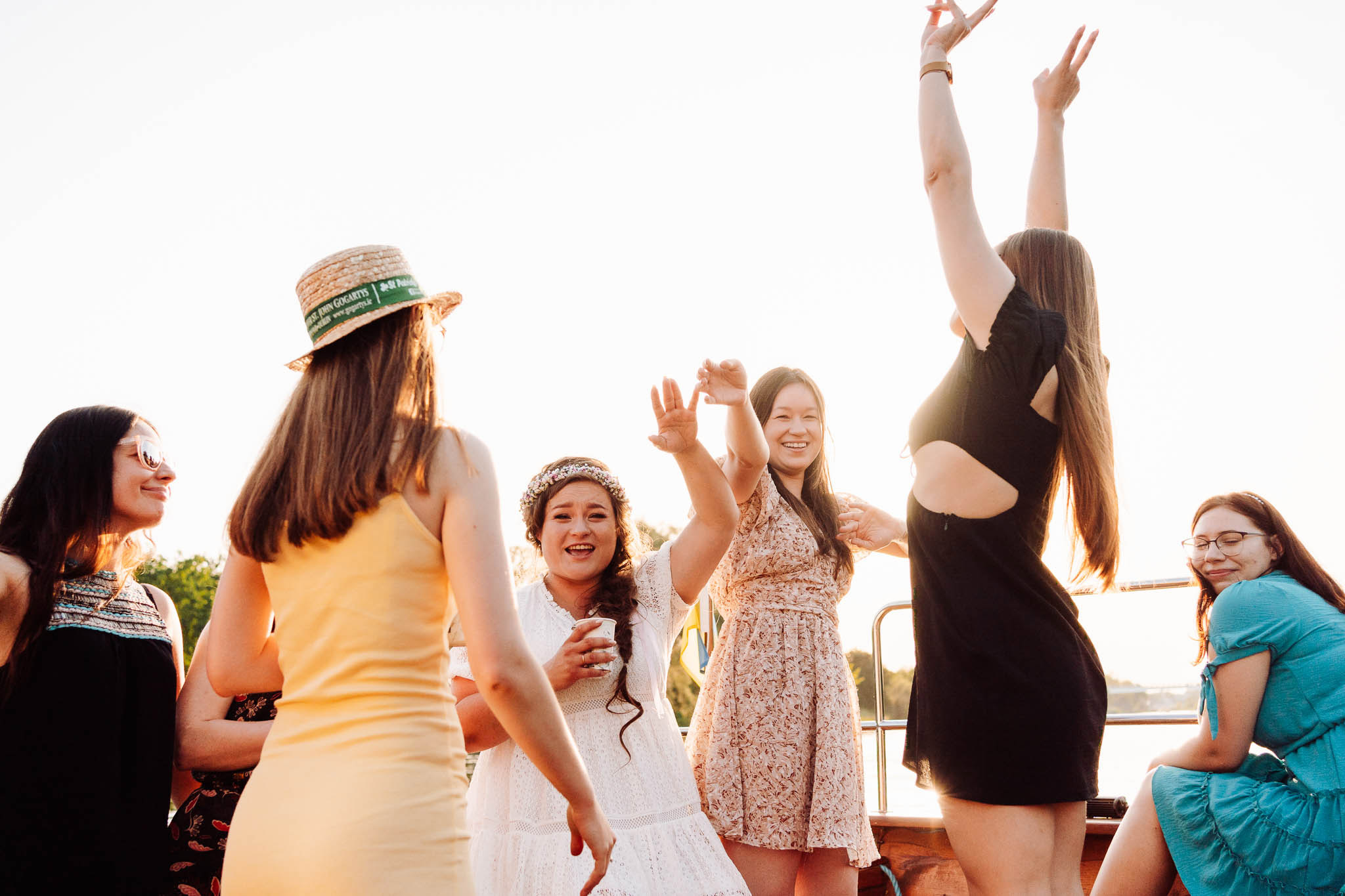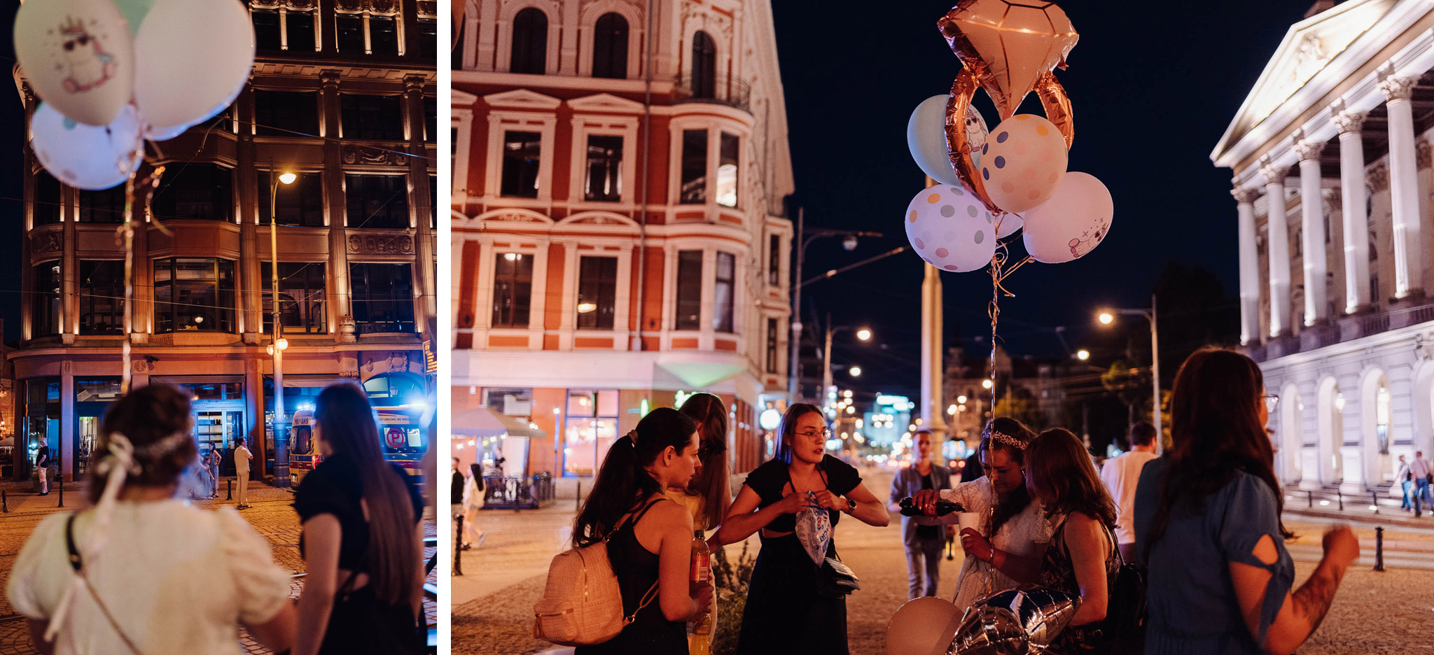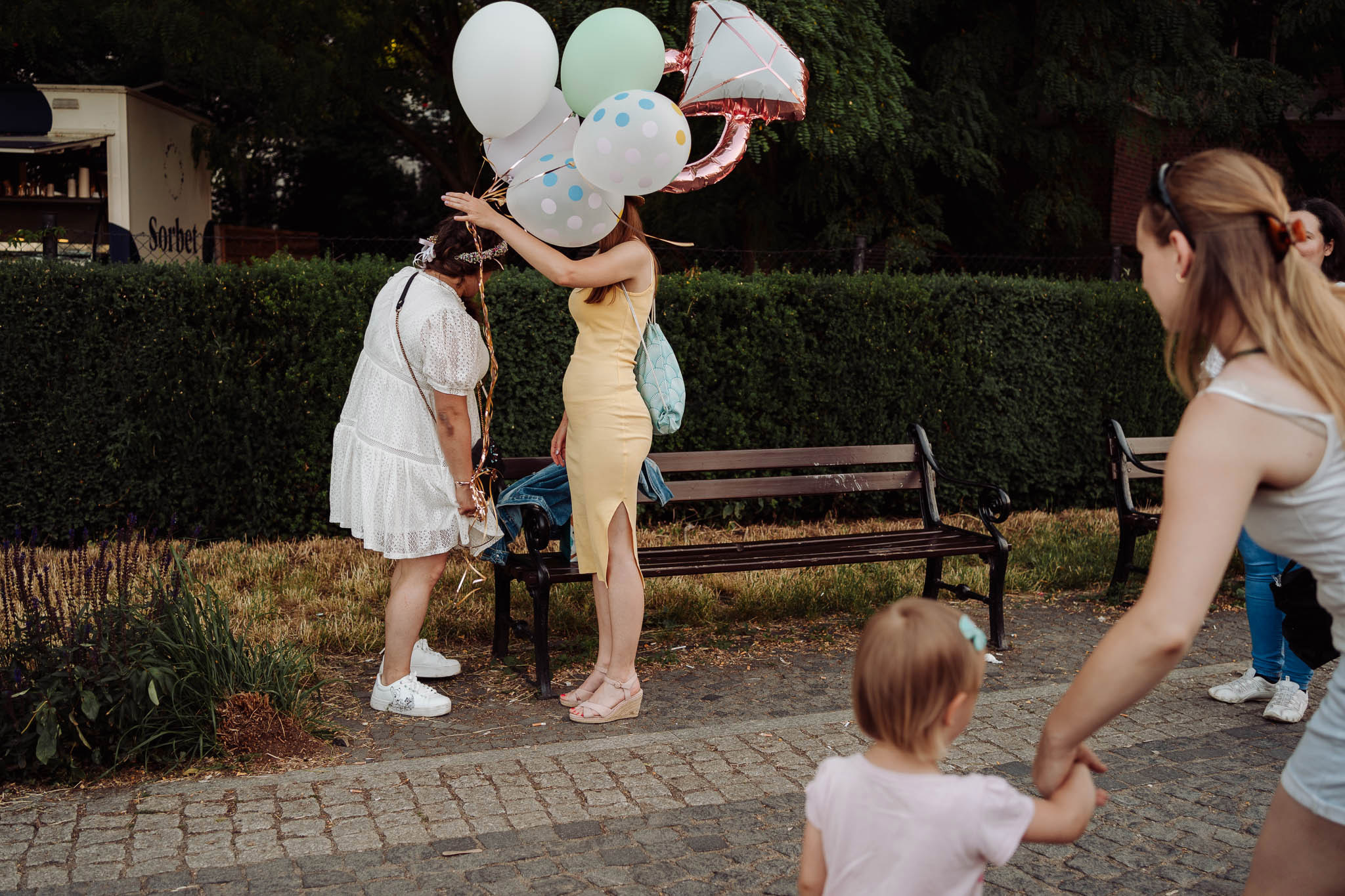 W oczekiwaniu na Karolcię, zwaną Przyszłą Panną Młodą, obczajałyśmy potencjalne łajby, które nie napawały nas optymizmem. Na szczęście gdy w umówionym miejscu zacumowała niebrzydka łódź, z której wysypała się grupa pijanych lasek, odetchnęłyśmy. Nasze dziewczyny przystąpiły do dekorowania, a ja pomiędzy nadmuchiwaniem balonów wyjęłam aparat.
