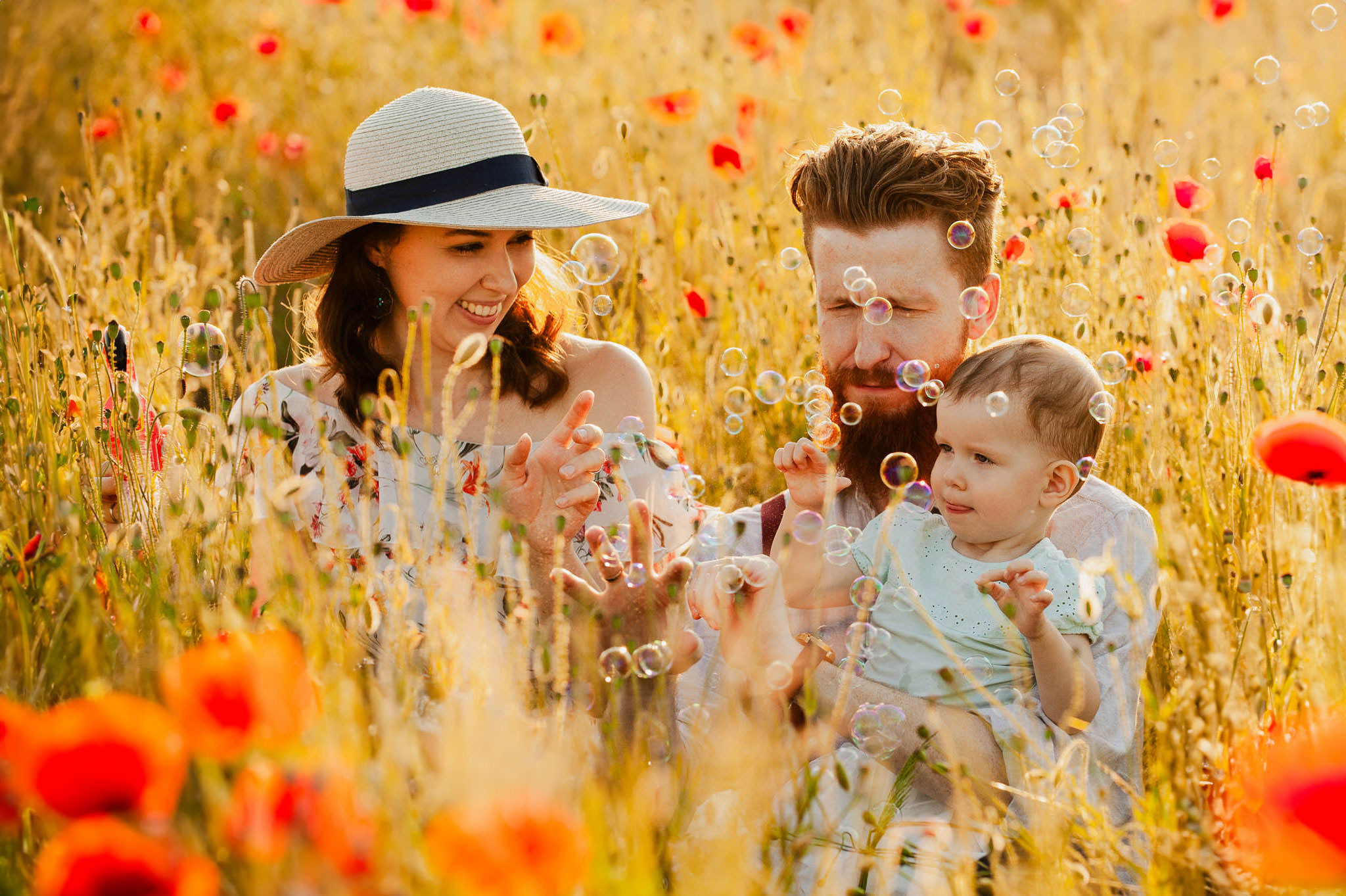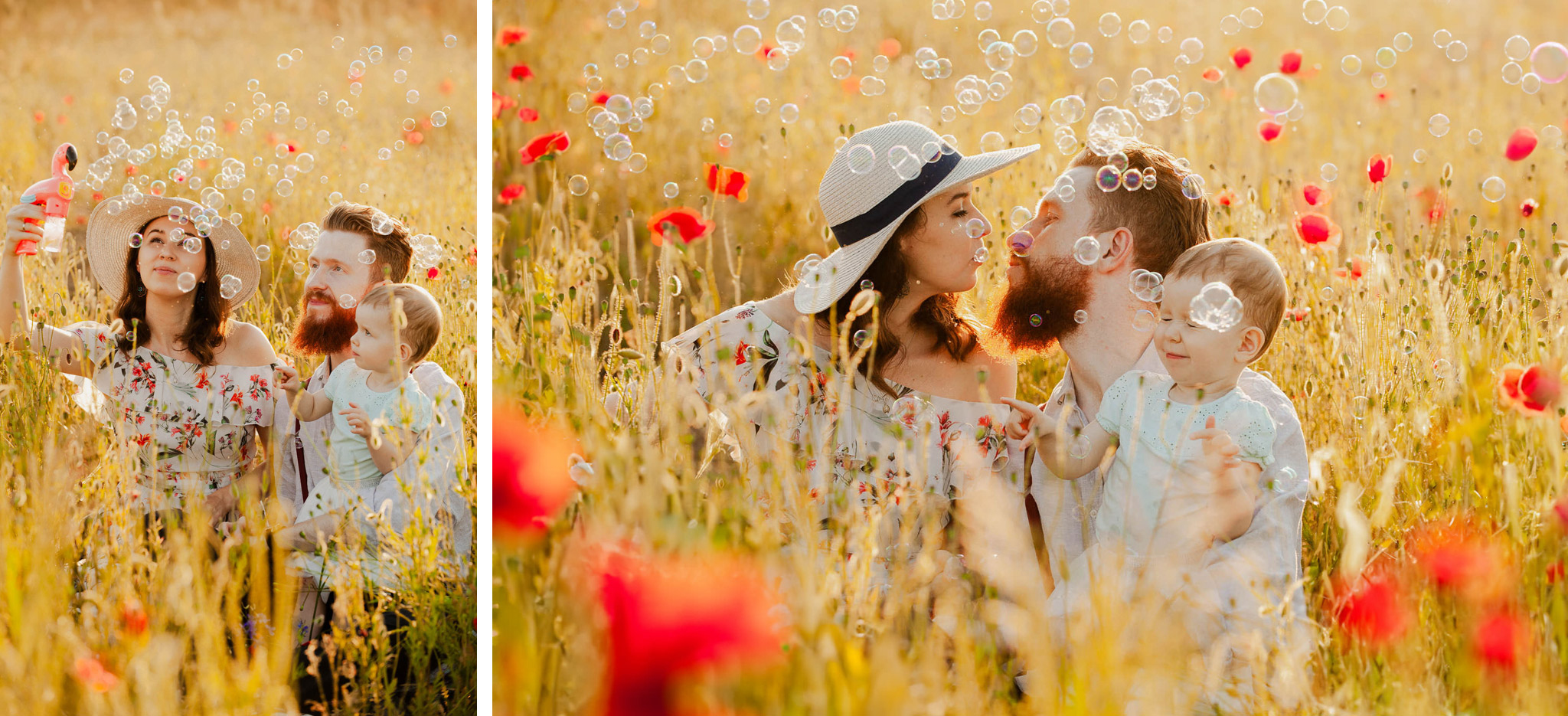Fruwające bańki mydlane i zachód słońca działają jak lep na fotografów. Po makach fotoszopowałam włażących nam ludzi.