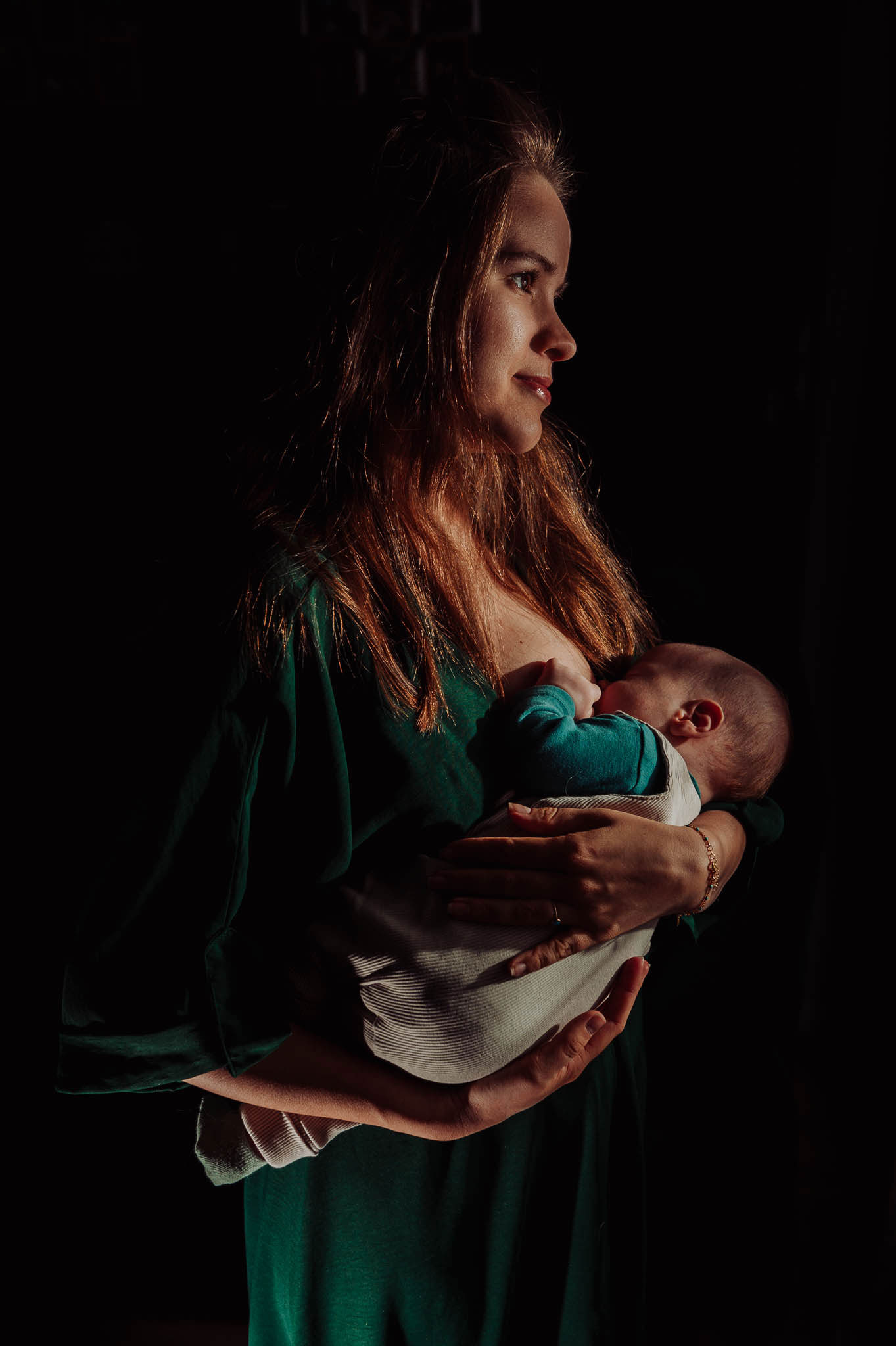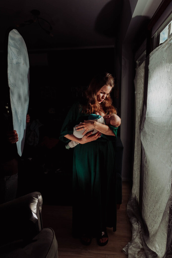 Lampę za oknem ustawiłam na dwa sposoby, lampę na fotelu u dołu tak, aby konturowała sylwetkę + blenda do wypełnienia cieni. Chciałam uzyskać klimatyczne, przytulne zdjęcia.